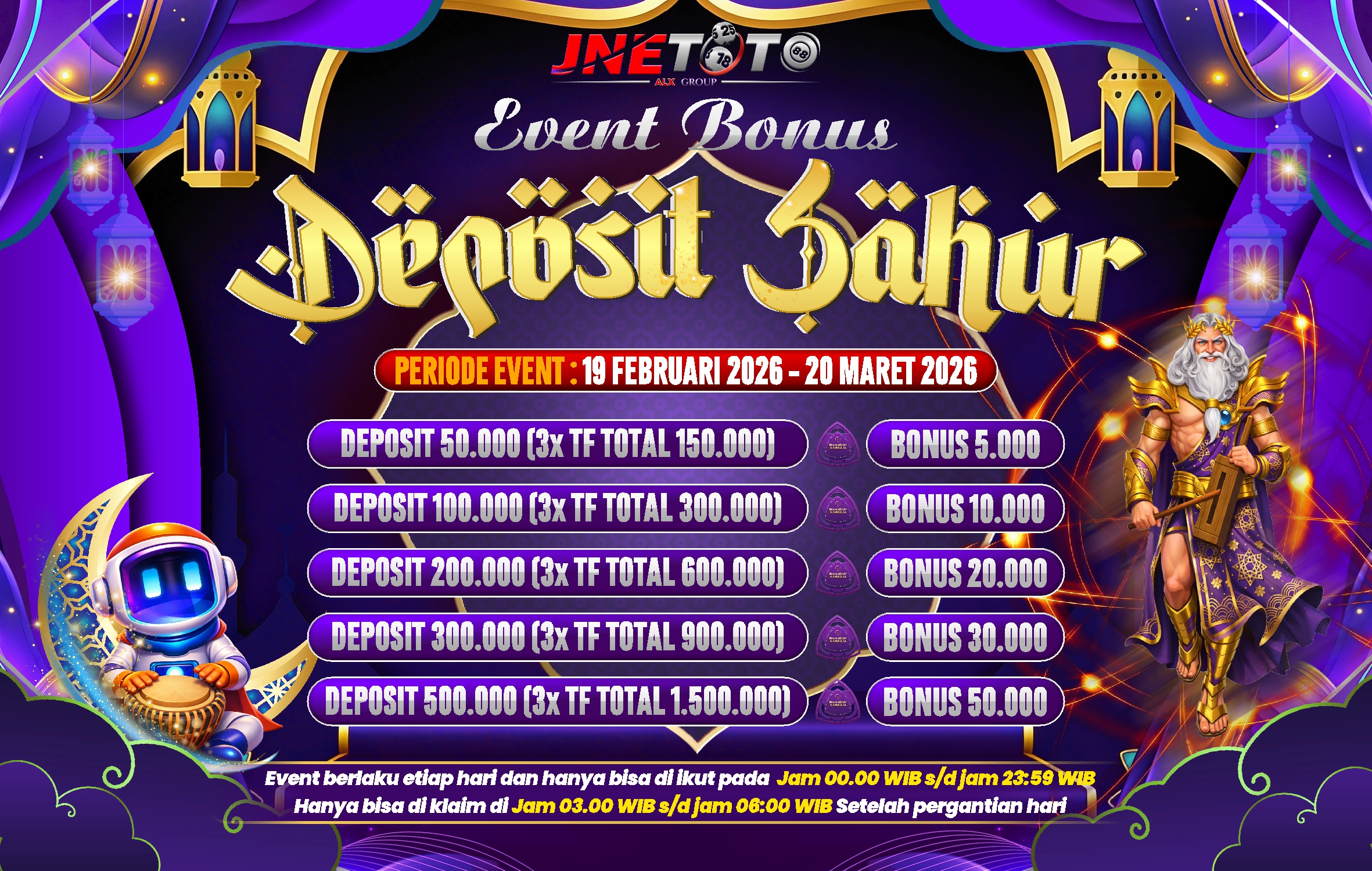 Selamat datang di JNETOTO - Bandar Togel Online, Live Casino, dan Slot Online Terpercaya. Minimal Deposit Rp5.000 | Minimal Withdraw Rp20.000 | Minimal Bet Togel 100 Perak | Minimal Bet Slot 400 Perak.